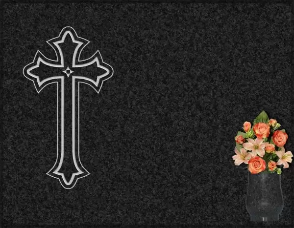 Lápida con cruz de lis grabada sobre granito negro Sudáfrica.