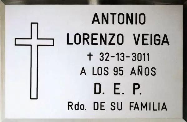 Placa de acero inoxidable de 3mm de espesor con posibilidad de cruz y texto grabado con borde biselado.